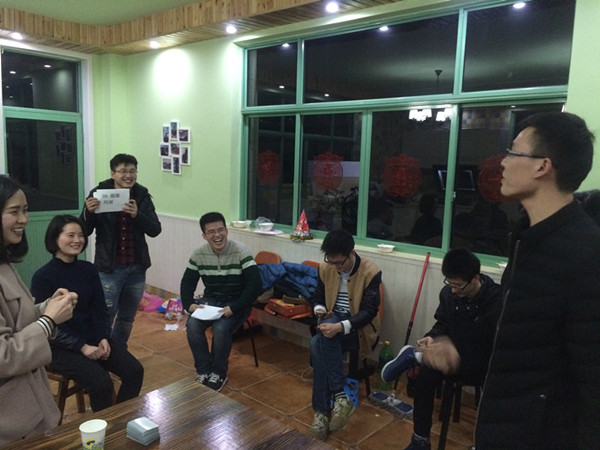 本次活动将班级同学分为四组:食材预备组、食材洗切组、大厨组与气氛调节组。经过同学们的认真准备,各组人员于当日下午4时30分左右将所需物品全部配备完毕。于是气氛调节组的小组成员组织大家玩狼人杀、你画我猜等智力游戏,做狼人的聪明狡猾,当警长的逻辑缜密,表演的令人捧腹,猜词的各种不靠谱,现场欢快气氛浓郁,笑声不绝于耳。