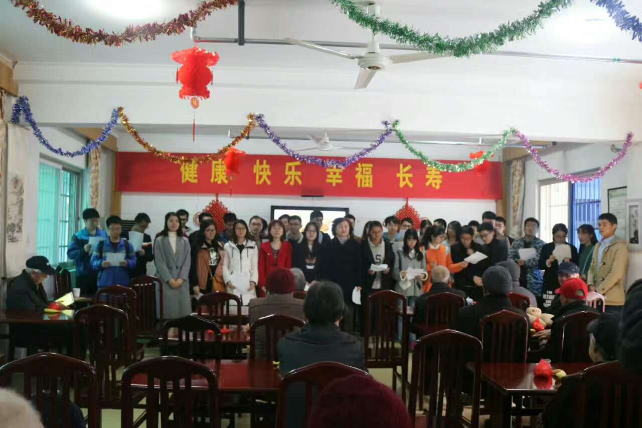 最后所有的志愿者上台演唱浙江大学校歌。时间很快就到了离别的时刻,活动负责人上台对本次活动做总结并向老人们派发小礼品,并承诺今年六月份还会来敬老院看望他们。敬老院的同志也上台对我们的到来表示感谢,从他们的眼中我看到了依依不舍。