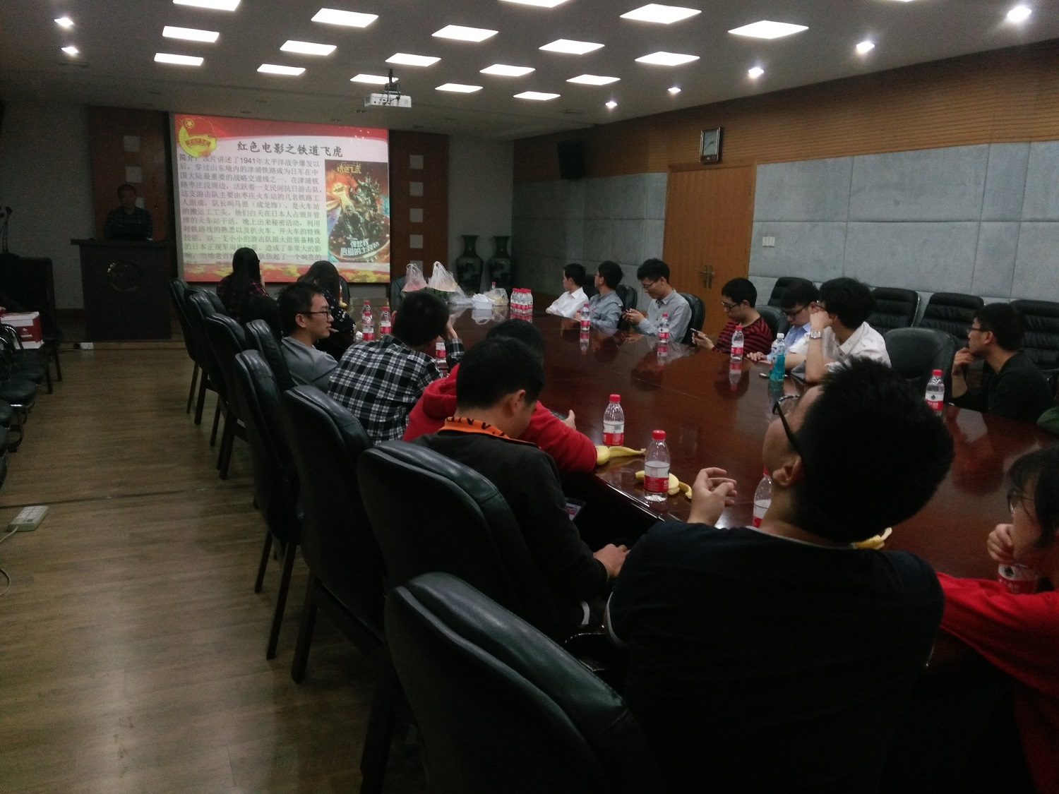 紧接着,观看红色电影。综合大家的建议,选择放映2015年由成龙主演的铁道飞虎。该片主要讲述了抗日战争期间,由铁路工人和平民百姓组成的铁道飞虎队巧妙击败日军的传奇故事。关闭会议教室的灯光后,大家都津津有味地边吃水果边欣赏电影。这还是第一次大家集体观影。