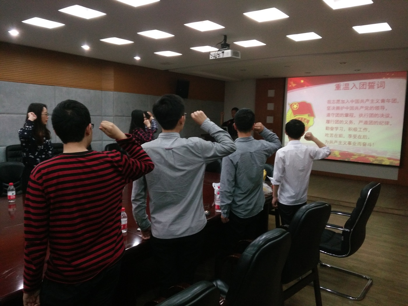 首先进行第一项,重温入团誓词。在班长带领下,全体人员起立,右手握拳,每个人都严肃认真地读着每一句誓词,仿佛回到了当年刚刚加入中国共青团时宣誓的那一幕。