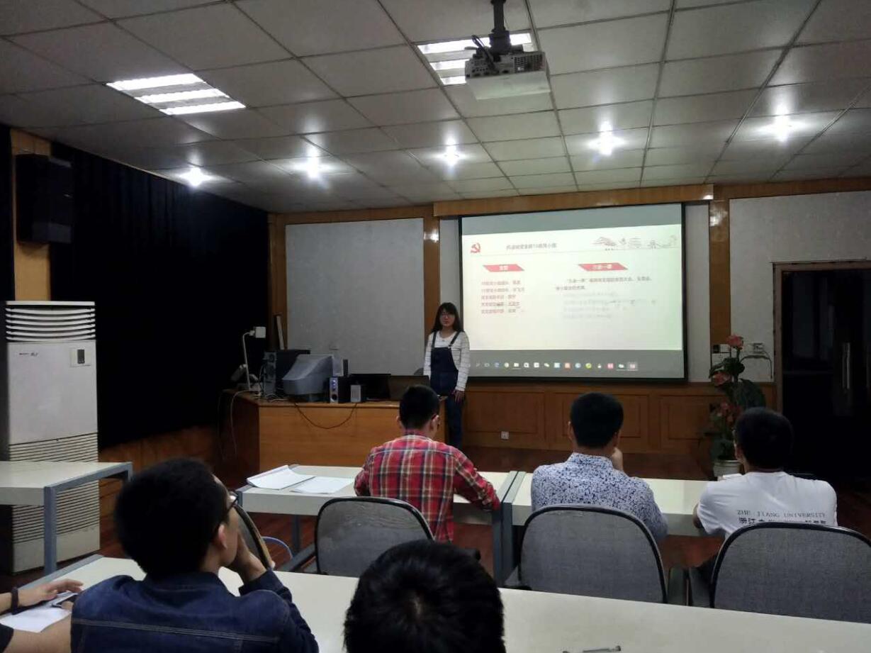 因本学院党支部进行了调整,郭宁首先介绍了本支部的支委构成。针对目前部分党员对“三会一课”还不甚了解的情况,重新强调了“三会一课”是指党支部的党员大会、支委会、党小组会和党课。随后,结合目前热播影视剧《人民的名义》,采用观影的方式大家共同学习党内的反腐、倡廉政策,虽然作为学生党员,校园环境相对简单,但是廉政之风也要尽早培养。