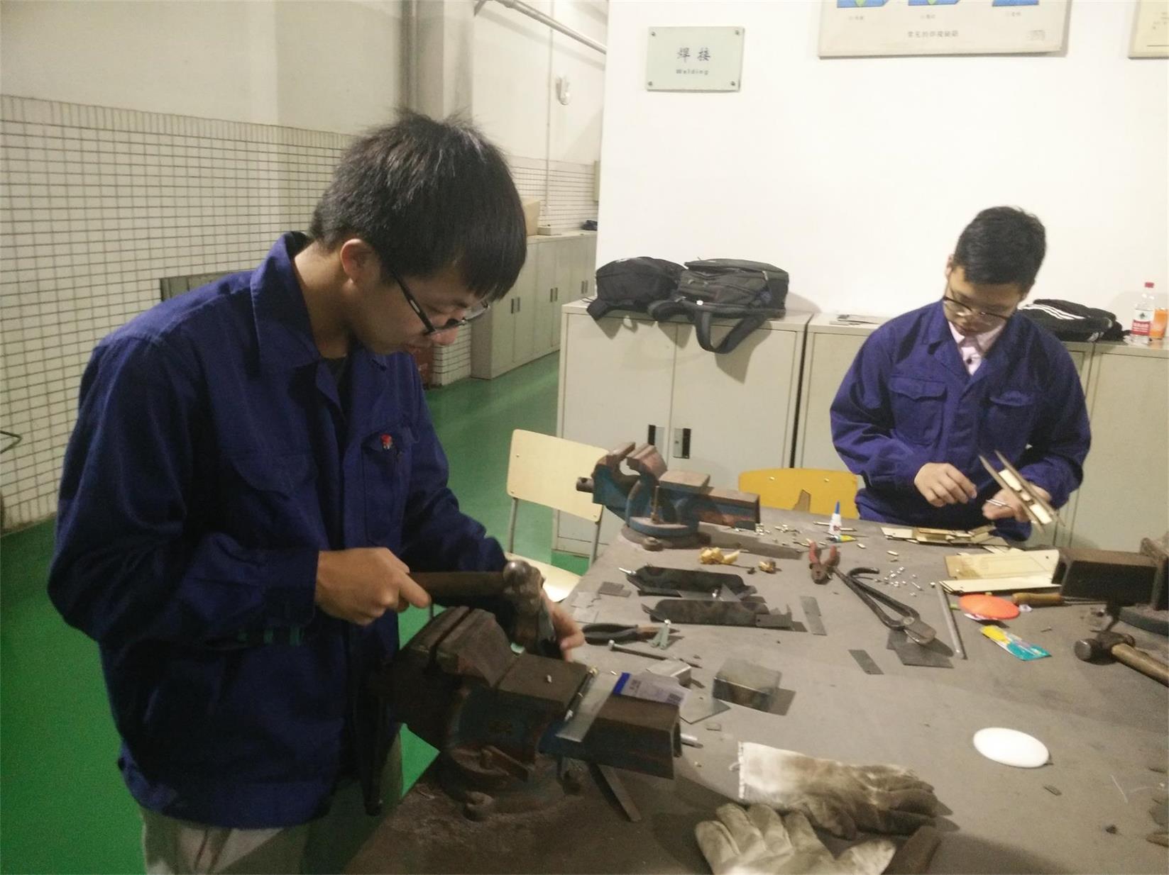 在这两天里,同学们全身心投入在自己的作品的创作上。周六早上,同学都早早地来到金工中心,拿出自己的设计图纸与老师们交流制作方案,确定制作工艺,然后细心地挑选材料,安排分工,一切都有条不紊地进行。认真地标记,精准地加工,同学们在每一步操作中都一丝不苟,力求让自己的作品制作完美。思想的交锋,一言一语都迸发着知识的火花;操作的精准,一刀一钻都彰显着求是精神。同学们热情高涨,金工中心的老师们不辞辛劳,终于在周日下午四点,所有的作品都顺利完成。