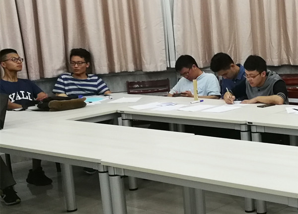 图注:陈建国同学(右一)在做会议记录
