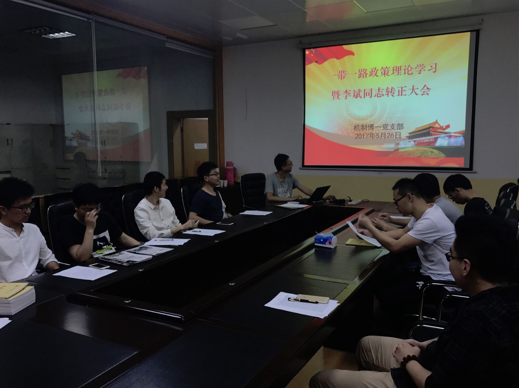 2017年5月26日下午,机械工程学院机制博一党支部召开了深入学习“一带一路”建设的民主生活会暨李斌同志转正大会。