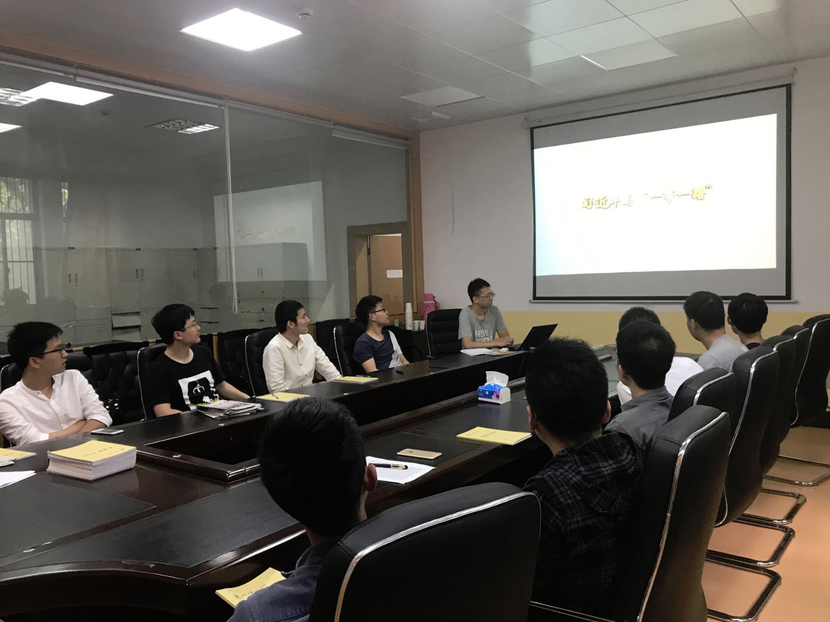 下午3时,会议在教一103准时开始,首先由支部副书记冯嘉炜同志介绍了本次会议的主题,给大家介绍了“一带一路”的历史背景与时代背景,在学习结束之后,大家完成了对李斌同志的转正会议。