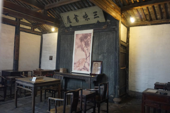 经过一座石拱桥,就来到了著名的“三味书屋”,是鲁迅先生12岁到17岁求学的地方。在书房的东北角,有一张老旧的硬木书桌,书桌所在的位置便是先生的座位了。课文中描写的“早”字,当然毫不意外的待在书桌右上角,但由于位置较偏,不可靠近拍照,所以在正面的大桌子上放了拓扑图,供大家观看。虽然没有清楚地看到先生原本课桌上的“早”字,但是只看拓扑图也足以让大家感到兴奋了,总觉得离自己认识中的鲁迅更近了一步。
