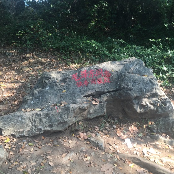 离开古庙,拾级而上,又看到了一块大石头,是原来主席读书阅报的地方。走到这里,本次云石山之行也已近尾声。长征第一山之名并不是因为其多么高大雄伟,而是因为它承载着厚重的红色记忆。