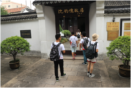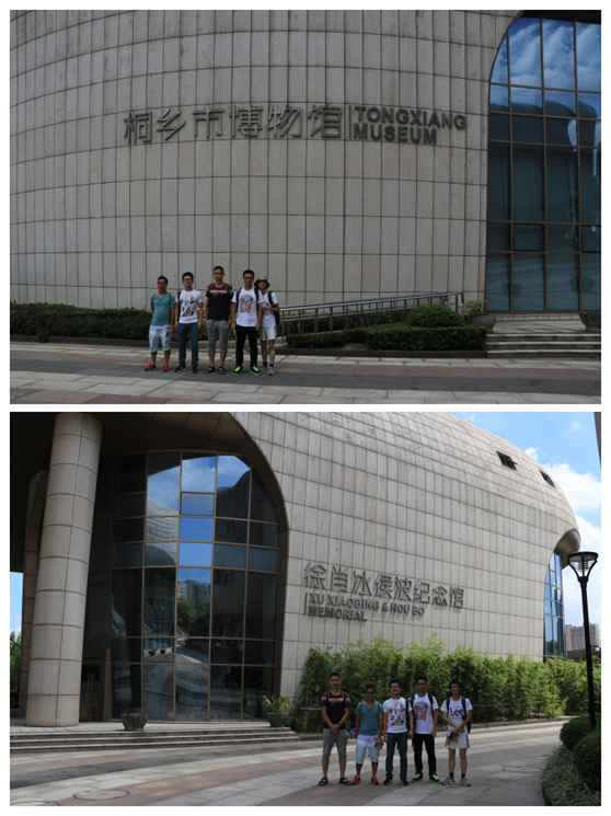 桐乡市博物馆,陈列诸多桐乡历史物质文化遗产,有凤栖梧桐、琢玉良渚、翰墨撷英三个固定场馆。实践团探访当日,正值折扇展览之际,大家领略了中国扇文化的博大精深,从起初的纳凉之物到成为文人骚客随身携带所必须,用以展示自身书画艺术。