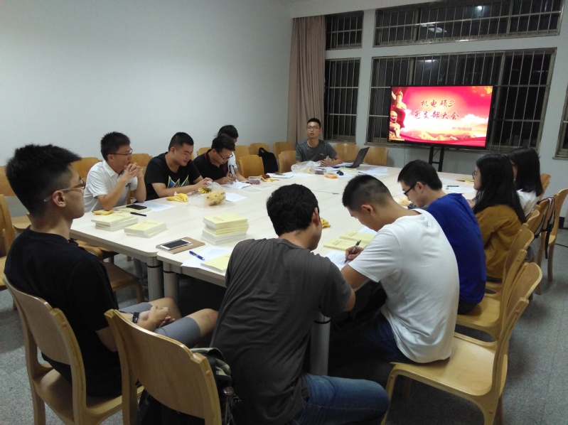 2017年9月25日晚21:00,机电硕士第三党支部在永谦B104召开了党支部大会,在支部副书记张浩翔的主持下,会议完成了校、院党代会代表候选人及党委、纪委委员候选人推荐,在欢迎新成员加入党支部的同时,通过“自愿报名,公平选举”的方式产生了新一届领导班子。
