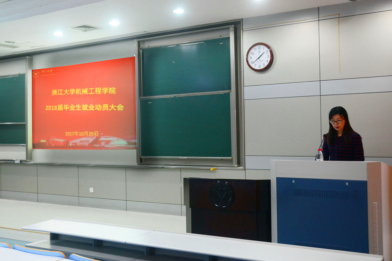 为了做好我院毕业生的就业动员,让其提前做好就业的各项准备,“浙江大学机械工程学院2018届毕业生就业动员大会”于10月20日下午在教七106顺利举行。院党委副书记项淑芳老师、学院团委书记王芳官老师、浙江大学就业指导与服务中心林芝老师以及我院2018届毕业生参加了本次动员大会。大会由王芳官老师主持。