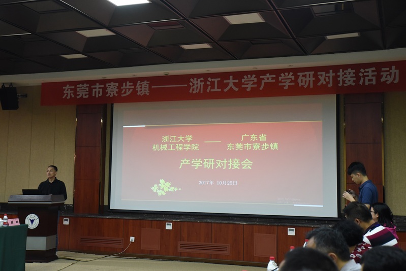 2017年10月25日,广东省东莞市寮步镇政府组织了民营管理局工作人员以及镇内21家企业领导和管理人员等30多人赴浙江大学机械工程学院开展科技对接活动。机械工程学院党委书记梅德庆出席了对接会。余中华、谢金、顾大强、伊国栋等9名教师出席了对接会,并向来访嘉宾介绍了各自研究所的情况以及科研成果情况,寮步镇尹荏彬副镇长介绍了寮步镇情况以及此次来访的企业调研情况等。代表团一行还参观了流体动力及机电系统国家重点实验室。 机械工程学院2017年10月26日