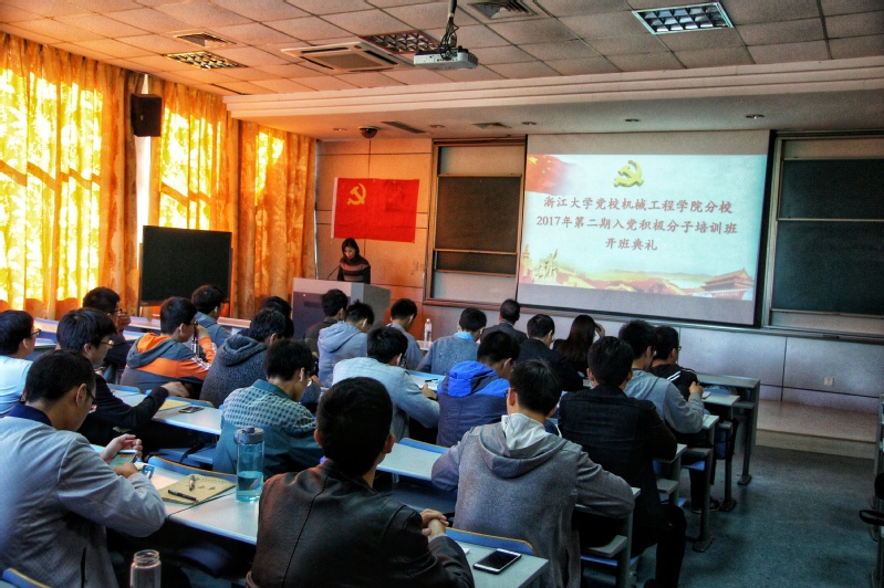 11月4日下午,浙江大学党校机械工程学院分校2017年第二期入党积极分子培训班开班典礼在玉泉校区教七-104多媒体教室举行,传媒与国际文化学院党委书记王庆文老师、机械工程学院党委副书记项淑芳老师、机械工程学院团委书记王芳官老师、机械工程学院团委副书记刘珊老师以及机械工程学院全体2017级第二期入党积极分子出席了本次典礼,开班典礼由学院团委书记王芳官老师主持。