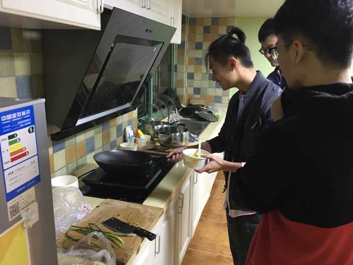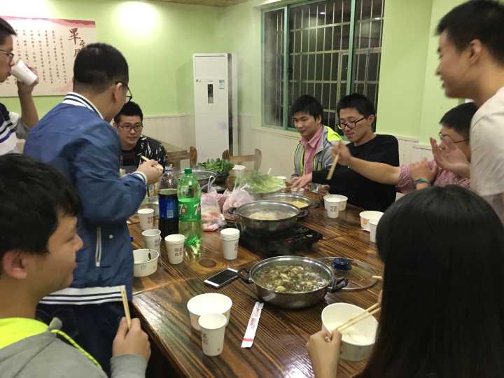 活动的开始是一顿自给自足的晚餐。同学们有的买菜,有的做饭,有的洗碗,忙得是不亦乐乎,都希望能为班级活动出一份力。吃饭的时候,大家围着火锅,其乐融融,饭桌上充满了欢声笑语,不是一家人胜似一家人。