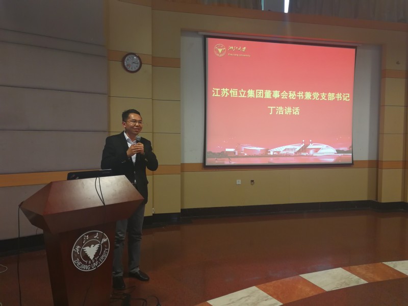 江苏恒立集团董事会秘书兼党支部书记丁浩先生代表恒立向本次获奖学生表示祝贺。丁浩先生详述了企业的发展历程、研发平台和发展规划,回顾了双方在实习实践、学术交流、科研合作等方面的积极互动和深入合作。企业全力为员工创造良好的职业发展环境,成为浙大机械毕业生的优质雇主。丁浩先生期待更多浙大优秀学子加盟恒立,共同建设全球技术领先、节能环保、极具竞争力的液压成套产业基地,将恒立发展为全球领先的高压油缸、高精密铸件、高压泵阀及液压系统集成四大产业的高端制造企业。