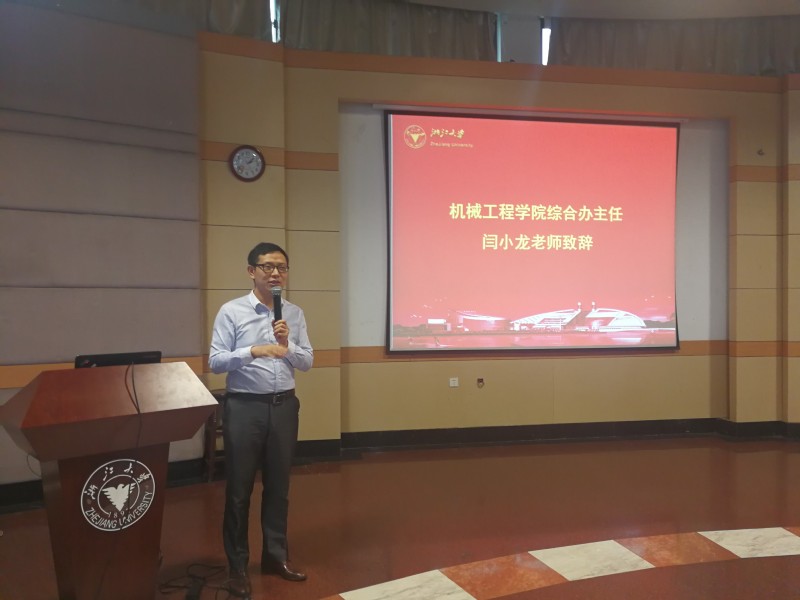 图注:机械工程学院综合办主任闫小龙老师致辞