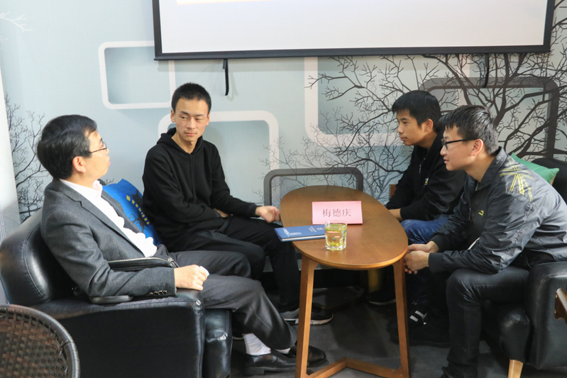 图注:梅德庆书记和大一新生促膝长谈