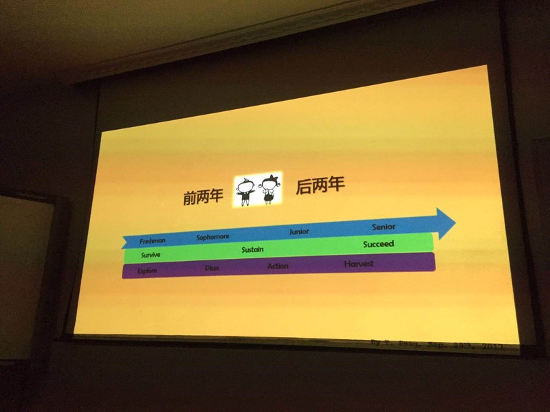 其次,我们邀请到的几位14级优秀的学长学姐给我们讲述了他们在保研、留学与工作的经历。也对我们班的学生讲述了大三怎么学的一个经验分享,让我们在秋冬学期的学习中取得一个满意的成绩。
