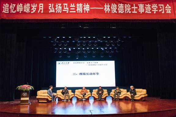 接着,林俊德院士当年求学时的五位同学与大家分享了林院士的成长经历。如今已步入耄耋之年的同学们深情地回忆了与林院士一起求学的时光,点滴的小事中无不透露出林院士刻苦钻研的精神和深深的家国情怀。在随后的互动环节中,面对同学们的提问,林院士的五位同窗们语重心长地向大家提出了在科研、生活等方面的具体要求以及对未来殷切的期望,同学们专心致志地聆听着老人们的谆谆教诲,受益匪浅。