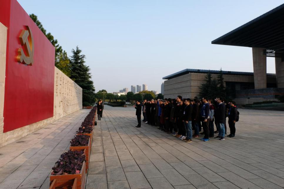 最后,学习队伍来到纪念馆北广场宣誓墙。在这里,全体师生庄严肃穆的重温了入党誓词。在梅书记的领誓下,庄严的誓词宣读声从老师们和同学们的口中铿锵崩出。誓词回响在蓝天白云、青山绿水间,也回响在宣誓人心房胸怀间。至此,重走“一大”路,再现“1921嘉兴故事”红船精神教育活动在庄严雄浑的宣誓中划上了圆满的句号。