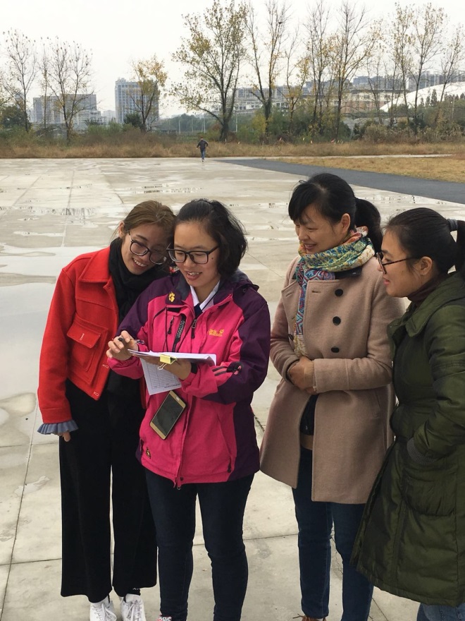 细雨濛濛,寒风凛冽,更加激发了大家健身锻炼的热情。有人撑着伞,有人拉上帽檐,大家一路上三两成群、有说有笑。一起参观了建设中的浙大新校门,绕回医学院,经过药学院的大门,沿着启真湖畔的小道走到本次活动的终点——“钱三强铜像”。这时,大家都已是浑身暖意盎然、精神倍增,储备满格的能量投身到下午的工作中。