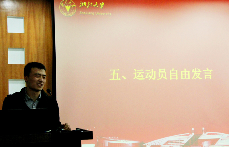 校运会工作的有序开展离不开全体工作人员勤勤恳恳、默默无闻的付出,运动会荣誉的取得离不开机械健儿们的奋力拼搏。会议最后的环节即是工作人员与运动员的分享环节。今年是学生会主席金钟博宇第二次作为学生会干部参与校运会的组织工作,主要负责组织机械学院大本营的服务工作。他说:“本次校运会工作的顺利开展,得益于本科生学生会、研究生会以及博士生会的相互配合、理解与协助。虽然这次工作中还存在一些问题解决的不够好,比如物资到位不及时,但以后我们会不断完善,向同学们展示更好的工作面貌”。研究生会文体部部长卢新亮,在本次校运会中,既是工作人员,也是运动员,并取得了一金一银的优异成绩。在发言中他对积极参与训练,永不放弃的运动员们、对辛勤付出的工作人员表示衷心感谢。本科生女子五项全能冠军李一曼同学说:“感谢学院召开本次表彰大会,这是对我们运动员的肯定。感激学生会工作人员的陪伴,我会再接再厉,再创佳绩”。被同学们称为“栋神”的焦中栋同学,在本次运动会中获得了研究生男子1500米与800米的双冠军。他在发言中向大家分享了自己与长跑结缘的故事,并向大家传授了一些训练的技巧。为了这次校运会,他从八月份开始准备,国庆之后,与卢新亮同学一起训练,二人相互鼓励,相互监督,不断刷新着奔跑速度。他说“这两块金牌中有一块属于新亮”。研究生男子4X400接力金牌代表姜俊峰同学在分享环节中表示比起成绩,收获友谊、历练身体与心态更重要。他动员大家运动会过后,仍要不断坚持锻炼,传承体育精神,不断提升自己的人格魅力。