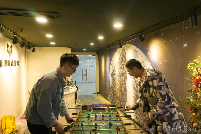 除了有挑战脑力的纸牌类游戏,桌游吧还设置了较量反应速度的桌式足球等游戏道具,让同学们在进行完脑力活之后愉悦身心。