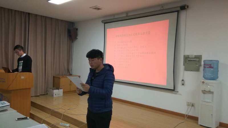 2017年12月7日18::00,机械工程学院机电硕士第一党支部于智泉大楼I栋四楼会议室召开了预备党员转正会议。会议讨论了关于周学同志申请转为正式党员的事宜。出席本次会议的有党支部副书记王润林、组织委员王元超、宣传委员谢根华以及其他16名支部同志。