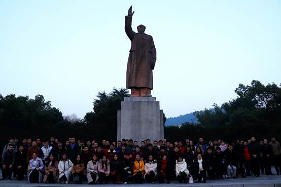 升国旗仪式结束后,所有人移步毛象,追寻党和国家的历史,分享红色故事。通过演讲介绍和有奖问答的形式,大家一起回忆那战火纷飞的峥嵘岁月,缅怀以毛泽东同志为代表的革命先辈的光荣事迹。仰望毛主席像,高举的右手展现大国气度,每个人的耳边仿佛回响着铿锵有力的一句话:“中国人民从此站起来了!”