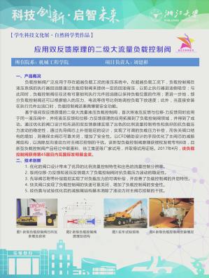 负载控制阀广泛应用于工程机械、液压装备,用于调整负载的下放速度,保证系统的运行安全。此级间液压双反馈的控制阀打破了国外公司的垄断,并且已经在中联重科和徐工集团进行推广适用,今年4月份此作品在第45届日内瓦国际发明展的金奖,极大的振奋了国内的液压控制阀领域。