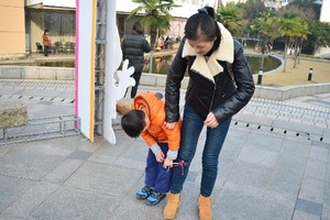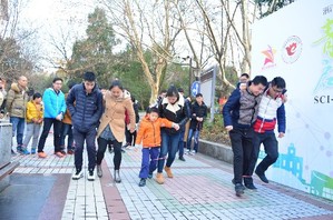 在全民健身、拒绝脱发的口号号召下,健身活动项目肯定是不会落下的,这不,我们就在科技文化展的现场举办了一场绑腿双人竞速赛,大家在40米长度的跑道内完成比赛,用时最少的同学可以获得小米手环一个,在现场工作人员的组织下, 14组观众参加了此次的小游戏,有同学、母子、父子、情侣、基友……最终经过激烈的争夺,两名男同学获得了冠军,用时仅有6.8秒就完成了比赛。