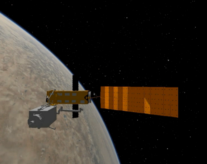 Figure 1: Proximity operation for servicing of ENVISAT satellite (synthetic image with ambient light)
