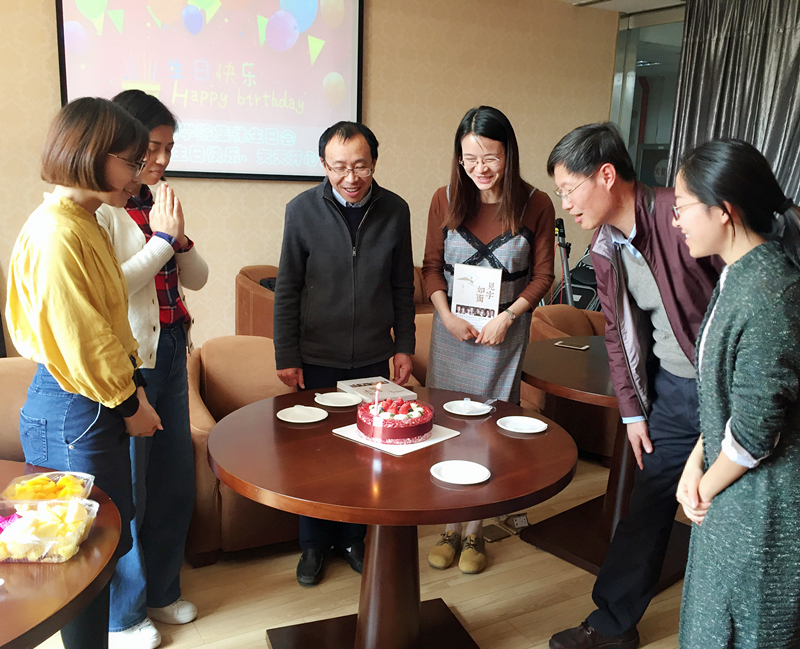 2018年3月29日中午,机械工程学院第一季度集体生日会在教1-319成功举办,学院党委副书记、工会主席项淑芳老师到场为老师们庆祝生日。 大家欢聚咖啡吧,一起唱生日歌、许心愿、吹蜡烛、切蛋糕,一同享用美味的生日蛋糕、新鲜的水果,还收到了学院工会为寿星老师们准备的生日礼物——《见字如面》,共度了一个温馨难忘的生日。 本次生日会,大家谈笑风生,拉近了彼此的距离,在机械学院这个大家庭里充分感受到了集体的温暖和归属感! 再次祝老师们生日快乐,心想事成!