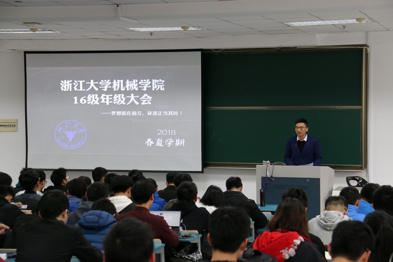 2018年3月16日下午,浙江大学机械工程学院16级团总支在紫金港校区东2-102教室举办了以“梦想就在前方,奋进正当其时”为主题的16级本科生年级大会,旨在引导同学们在新的学期树立个人目标,端正学习态度,找到人生方向。本次年级大会由辅导员李杨宁老师主持,机械学院16级全体本科生出席了此次会议。