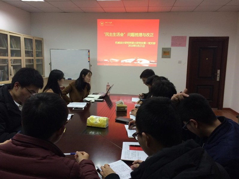2018年3月21日,机械设计研究所硕士研究生第一党支部(原机设模具党支部)根据《中共中央组织部关于召开2017年度基层党组织生活会和开展民主评议党员几个问题的通知》精神再次召开了以纠四风为主题的民主生活会。全体正式党员、预备党员和入党积极分子参加了本次会议。