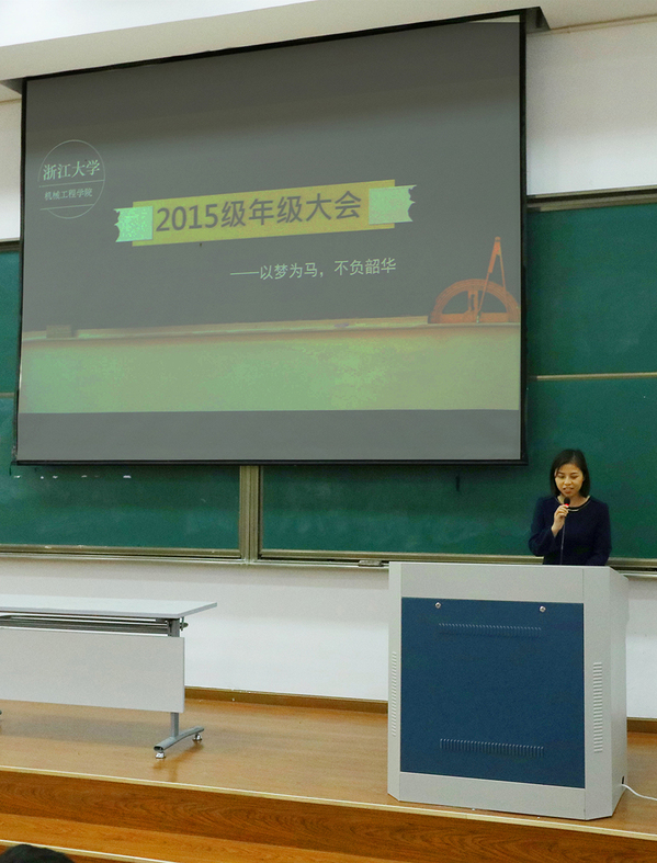 保研?考研?留学?就业?大四将至,人生关口,该如何度过,才能让青春的枝头绽放梦想之花?该如何选择才能不负韶华?4月12日下午,机械工程学院在玉泉校区教一234教室召开了以“以梦为马,不负韶华”为主题的2015级本科生年级大会。学院2015级全体本科生济济一堂,共同接受来自学院老师以及往届学生对他们未来人生规划的悉心指导帮助。出席本次年级大会的有:学院团委书记王芳官老师,本科生教育办主管钟瑞明老师,以及六位2014级优秀学生代表。会议由王芳官老师主持。