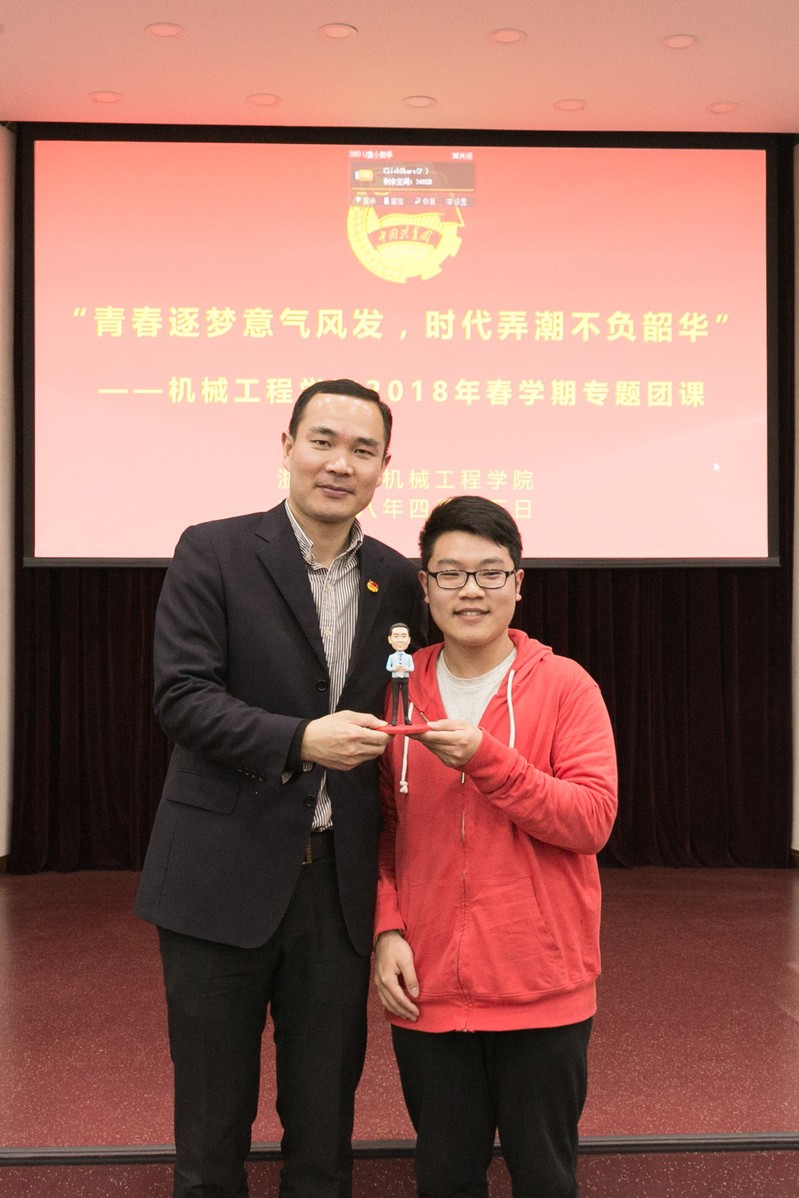 机械工程学院团员代表王钒同学代表学院全体团员向沈黎勇老师赠送了纪念品。