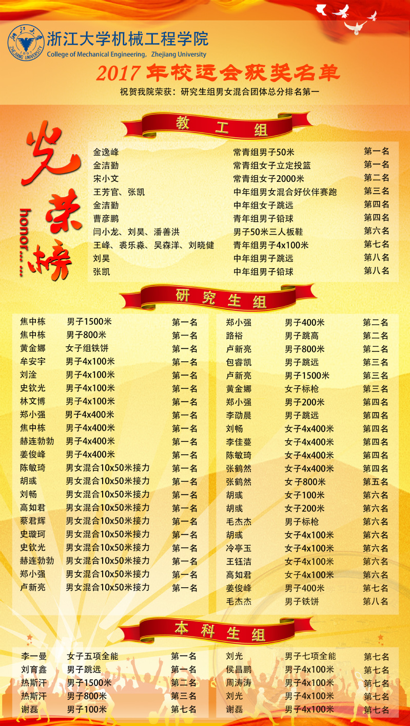 喜报!浙江大学机械工程学院2017年校运会再获佳绩