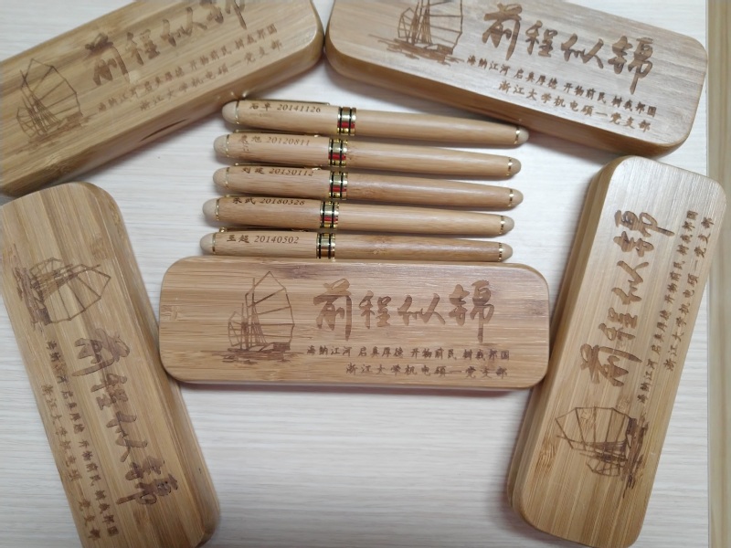 然后,党支部副书记王润林同志、组织委员王元超、宣传委员谢根华代表党支部向各位毕业生党员赠送纪念品,笔上带有姓名和入党时间,希望各位毕业生党员永远牢记自己的政治生日,笔盒上刻有前程似锦和“海纳江河、启真厚德、开物前民、树我邦国”浙大精神,希望各党员工作岗位上不忘初心、一帆风顺。