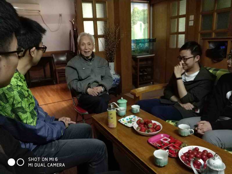 走进陈老师家里,我们发现陈老师家里的陈设布置朴素而整洁,得知我们要来拜访,陈老师也热心地提前准备了椅子和水果。陈老师热情地招呼大家坐下,同学们各自作了简单的自我介绍,陈老师也自报家门:陈老师是江苏镇江人,1953年高中毕业考入浙江大学机械系的机床与刀具专业,那时还只有17岁,1957年大学毕业后就留校在机械系。谈及家人,陈老师脸上洋溢着幸福,两个孩子各自成家立业,都在各自的领域内颇有成就,最小的小孙女也上高中了。