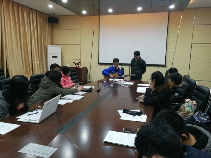 为增进各个团支部之间的交流,每次团总支会议末会由支部派代表上台进行才艺展示,或者各支部共同参加一项活动。先前的沙漠淘金活动中,大家欢声笑语,其乐融融;一些同学还为我们科普了一些生物医学、金融学等知识内容,大家也都受益匪浅。这次活动中,机械工程1504班班长冯武希同学将为我们表演吉他弹唱《男孩》。