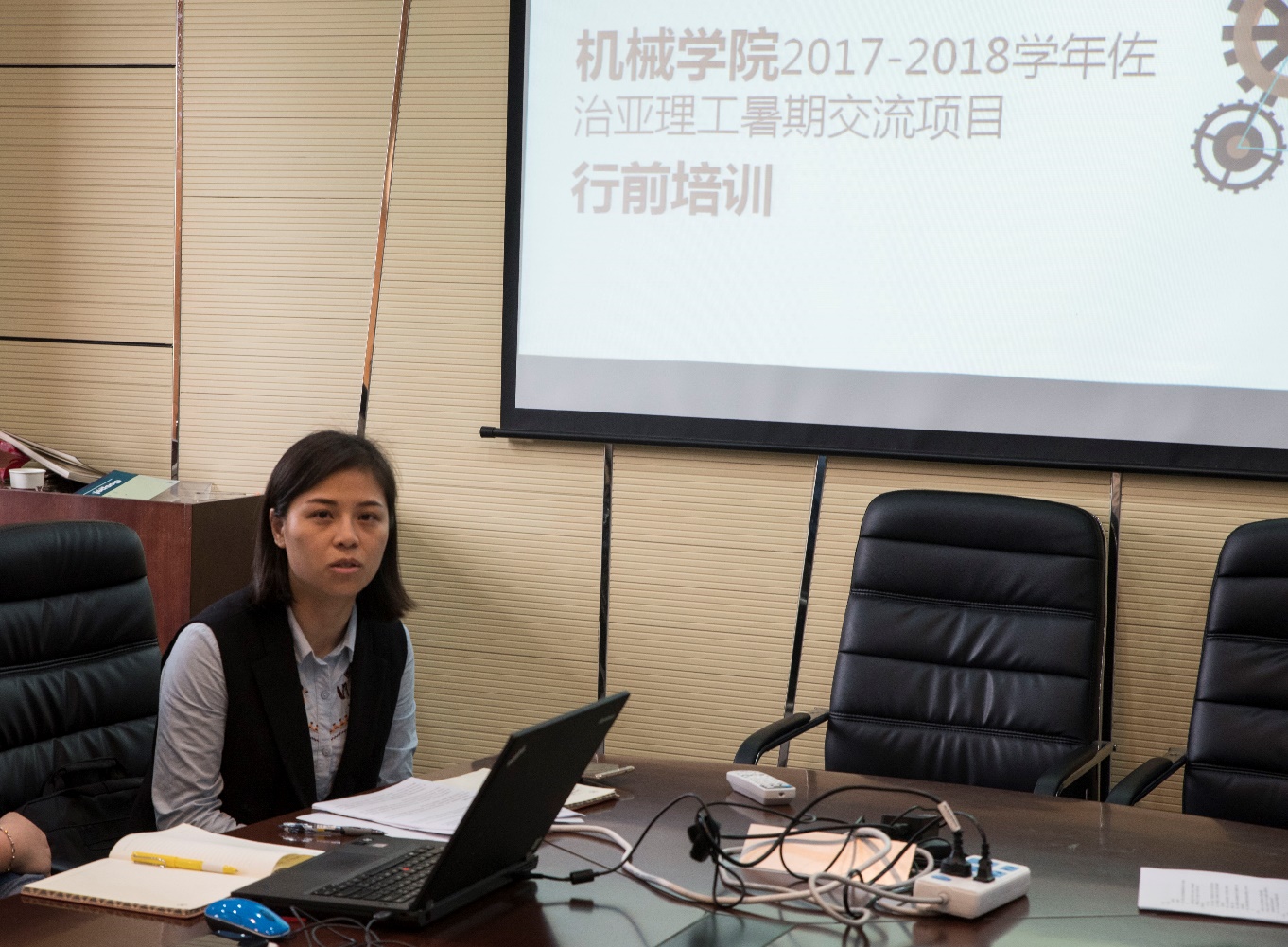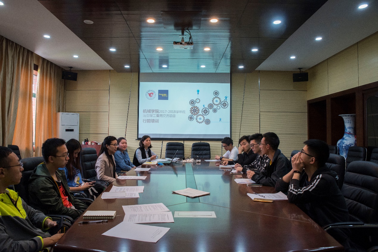 5月8日上午,浙江大学机械工程学院2017-2018学年赴佐治亚理工暑期项目行前培训在玉泉校区教一411举行。机械工程学院党委副书记项淑芳老师,团委书记王芳官老师,学院办公室邱艺欣老师以及交流团的各位同学参加本次活动。