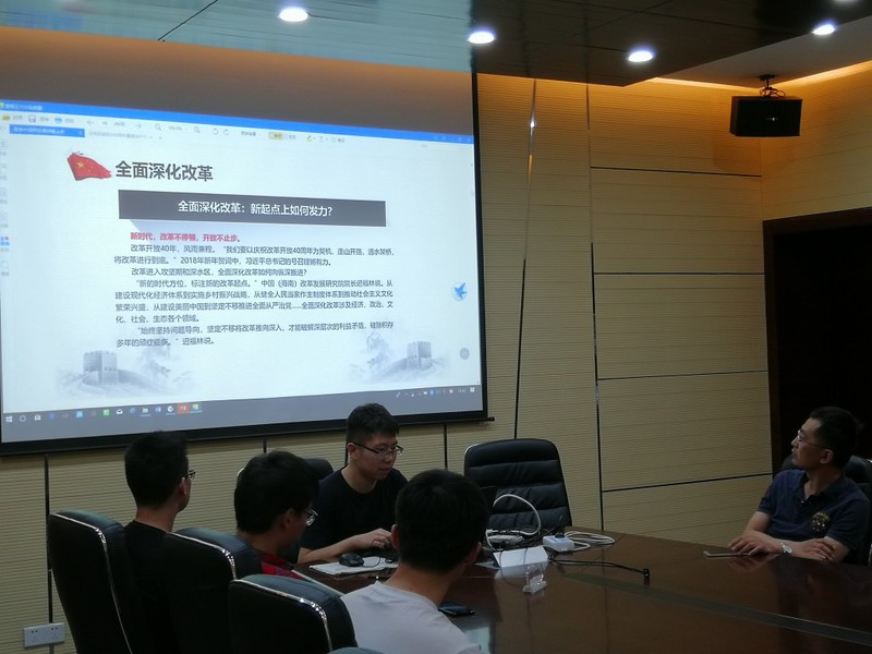 在听完主持对两会的汇报后,有的同学也就我们在生活要如何去展现学习两会的成果表达了自己的看法。要努力学习并在将来为国家重点研究领域做出贡献是大多数同学的想法;也有同学指出,作为一名当代大学生,在现在的日常生活就要发挥模范作用,宣扬正能量,积极与网络舆论的反动势力对抗。