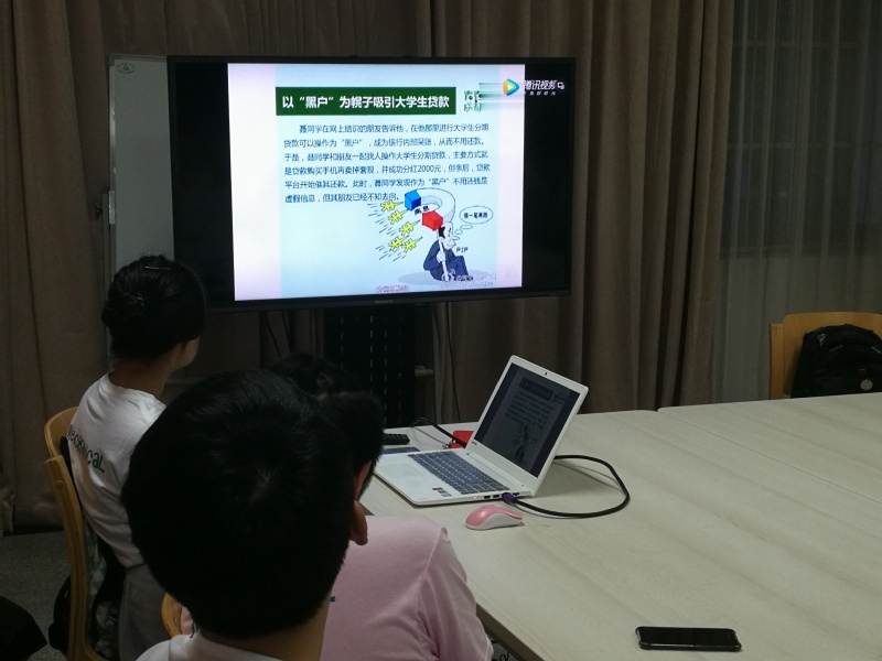 这次班会分为三个环节:“重读风险告知书”,“校园贷微电影观看”,“班主任深刻讲解”。通过重读风险告知书,再次系统认知校园贷的方式、危害和防范措施。微电影观看则是通过新闻报道、网络传播等途径,让大家更形象的接触到校园贷的真实案例。看完微电影。大家纷纷表示很震惊,感到警醒。