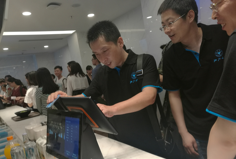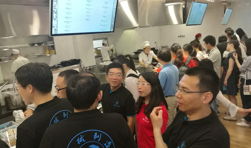 伴随着阵阵欢声笑语,校友们来到了学校的二食堂——目前的教工食堂、一楼西餐厅等地,在食堂享用了丰盛午餐的校友们,深刻感受到了学校在软件、硬件方面的飞速发展。校友们对学校后勤系统服务的发展给予了高度评价,为学弟学妹能有更加适宜的学习生活环境而感到欣慰。