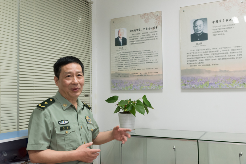 从云少将首先与随从人员来到了位于玉泉校区第一教学楼的马兰工作室参观。梅德庆教授和项淑芳老师向从云少将介绍了马兰工作室的建立和发展状况,以及接下来工作室的建设规划。从云将军对工作室的陈设提出了宝贵的改进意见。之后梅德庆教授把“林俊德事迹学习会”的光盘转交给从云少将,从云少将连连称赞,并表示之后也要举办类似的活动。当看到墙壁上程开甲院士、吕敏院士、林俊德院士等浙大马兰人的事迹的宣传栏后,从云将军谈起他知道的关于林俊德院士生前的事迹,在场的人无不为之动容。