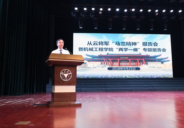 5月25日下午,浙江大学机械工程学院主办的从云将军“马兰精神”报告会暨机械学院“两学一做”专题学习会在玉泉校区永谦活动中心举行。马兰基地高级工程师从云少将带来主题为“艰苦奋斗干惊天动地事,无私奉献做隐姓埋名人”的报告,为求是学子分享马兰精神。马兰基地政治部工作人员、浙江大学国防生选培办主任薛东、大校蒋明健、浙江大学党委宣传部副部长卢军霞、航空航天学院党委副书记戴志潜,机械工程学院党委副书记项淑芳,副院长刘振宇出席活动。机械工程学院全体师生党员、浙江大学党校2018年第一期本科生预备党员培训班成员和部分国防生代表近1000余人参加了本次活动。浙江大学机械工程学院党委书记梅德庆教授主持。
