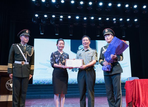 图注:卢军霞老师为从云将军颁发“马兰精神”宣讲团导师聘书