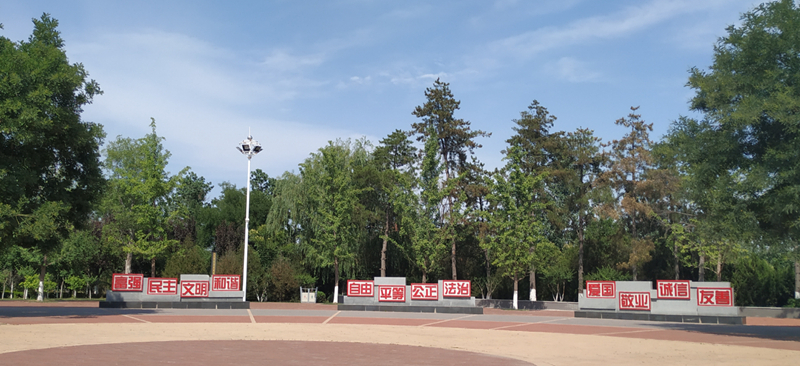 习仲勋的陵园位于陕西省富平县城西北陶艺果林园附近,陵园内植有侧柏、龙柏、白皮松、火球等。陵园广场上,刻着社会主义核心价值观主要内容:富强,民主,文明,和谐,自由,平等,公正,法治,爱国,敬业,诚信,友善。
