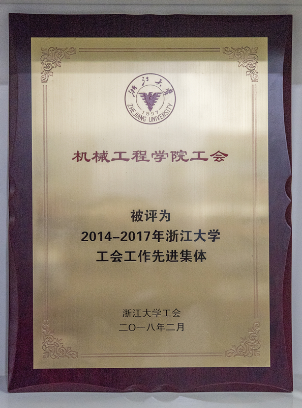 2018年6月14日,浙江大学工会常务副主席楼成礼等老师为机械工程学院授予浙江大学2014-2017工会工作先进集体荣誉奖牌。机械工程学院党委副书记、工会主席项淑芳老师及学院工会委员代表接受颁奖。