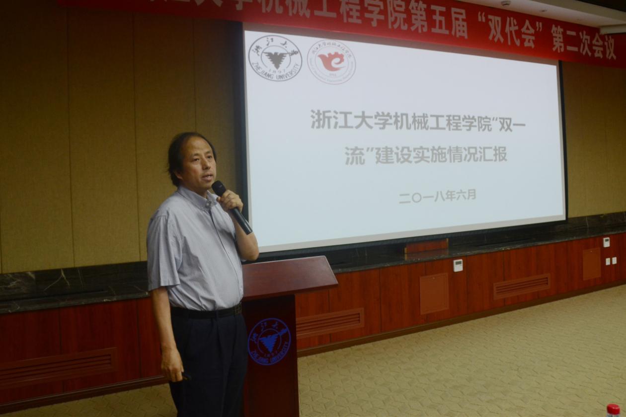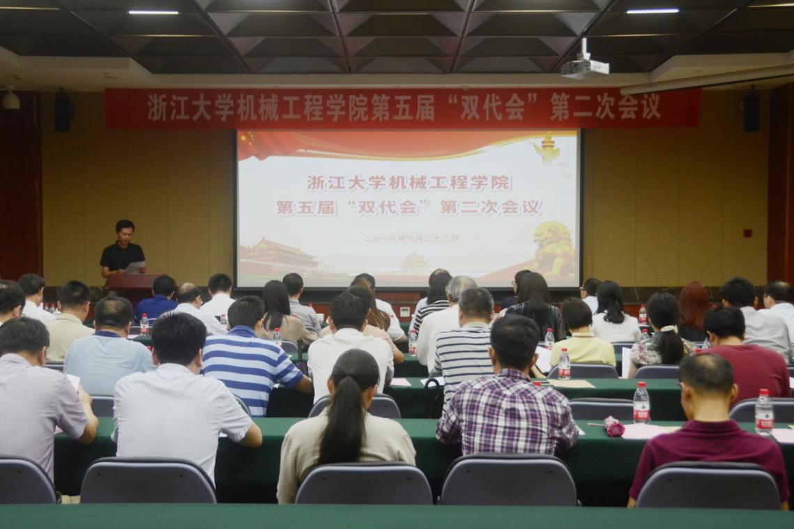 2018年6月23日下午,浙江大学机械工程学院第五届教职工、工会会员代表大会第二次会议于邵科馆212会议室顺利举行。机械工程学院院长杨华勇院士、党委书记兼副院长梅德庆教授、党委副书记兼工会主席项淑芳老师、副院长居冰峰教授、副院长刘振宇教授、制造技术及装备自动化研究所所长傅建中教授、微纳技术与精密工程研究所所长刘涛教授,以及学院50名双代会代表出席了本次大会。学院工会副主席刘昊副教授主持会议。